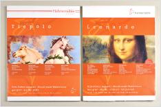 Der Echt-Bütten Aquarellkarton „Leonardo„ von Hahnemühle ist naturweiß, säurefrei, lichtbeständig und von höchster Alterungsbeständigkeit. Alle Blöcke sind rundum mit einem Gazestreifen verleimt, der eine gute Flachlage nach dem Anfeuchten garantiert. Dieser schwere, voluminöse Aquarellkarton mit seiner weichen, harmonischen Oberflächenstruktur gewährleistet ein exzellentes vermalen der Acrylfarbe und eine hohe Farbbrillanz. Hervorragend geeignet für die Lasurtechnik und dünne deckende Farbaufträge. Das 600 Gramm Papier gibt es in rau und matt.